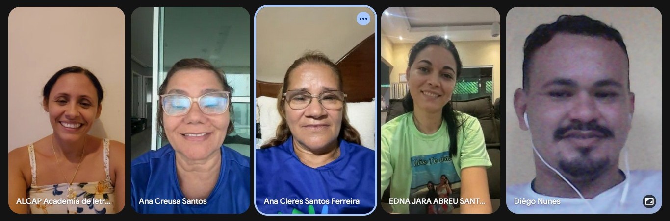 Estiveram presentes os gestores do projetos: Clube de Leitura (Edna Jara Abreu Santos); Plantio Solidário (Ana Cléres Santos Ferreira); ALCAP Itinerante (Diêgo Nunes Boaes) e Biblioteca ALCAP Prof. Taninho (Ana Creusa Martins dos Santos).